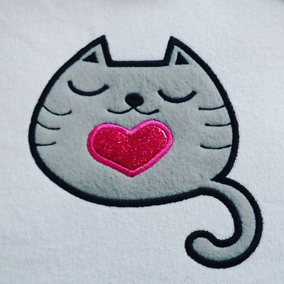 Cute Kitty with heart applique machine embroidery design. Digital File 4x4 5x7/ Cat applique embroidery design
