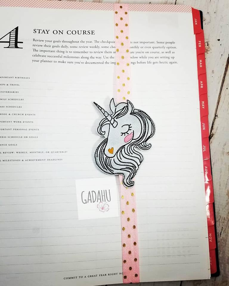 This is an Instant Download Embroidery Digital File " Unicorn Planner bookmark ITH Embroidery design"