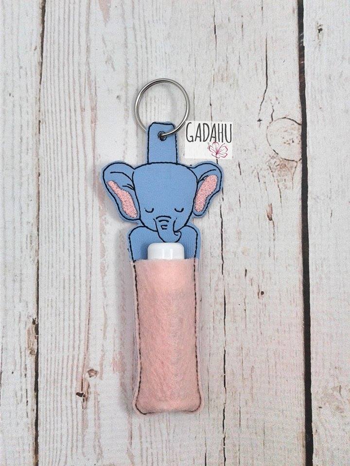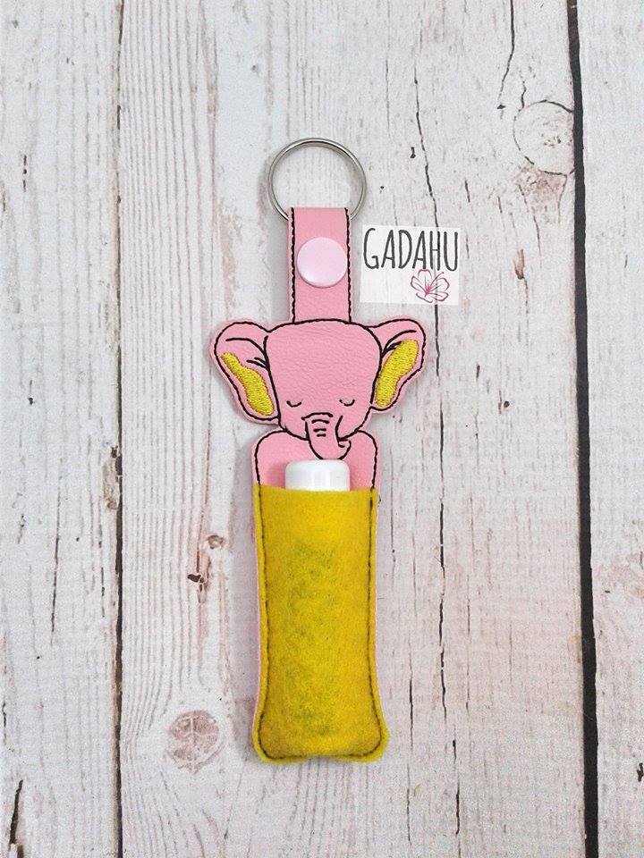 Elephant Chap Stick Holder ITH Embroidery design file. Eyelet and Snap Tab