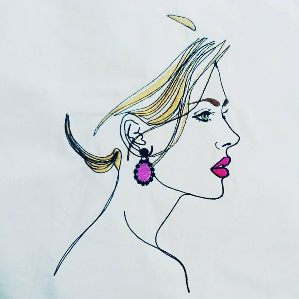 This is an Instant Download Embroidery Digital File "Elegant Woman with earring"