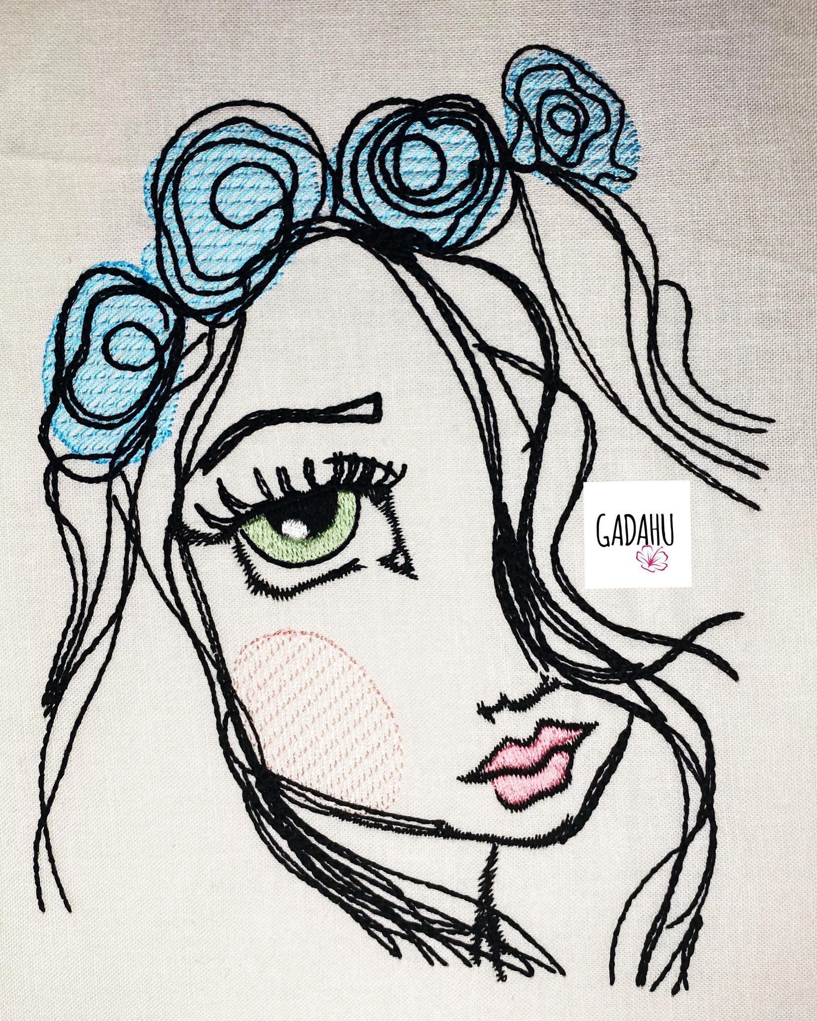 This is an Instant Download Embroidery Digital File "Girl Face with Flowers"