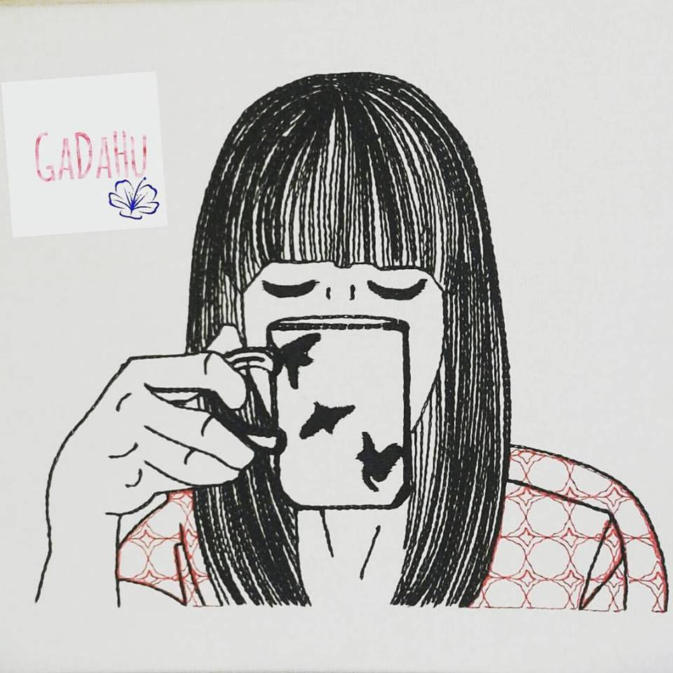 This is an Instant Download Embroidery Digital File "Girl with Mug"
