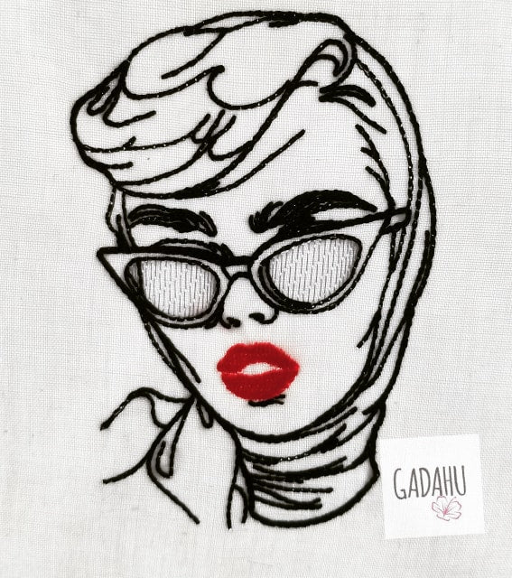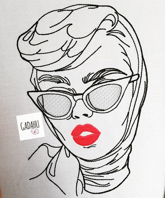 This is an Instant Download Embroidery Digital File "Girl with scarf Machine Embroidery Design File 4X4/5X7