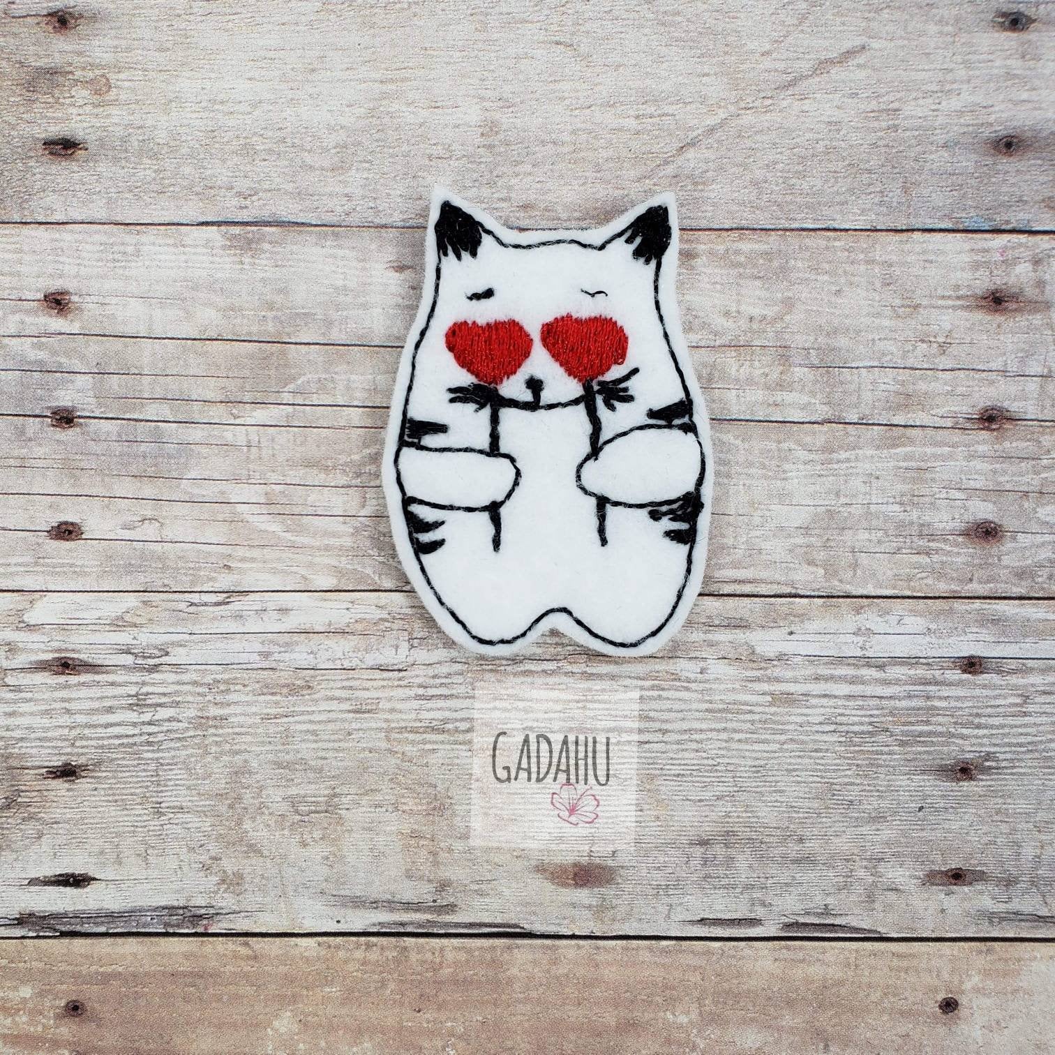 Cat Love feltie. Embroidery Design 4x4 hoop Instant Download. Felties. Animal feltie. Valentine's feltie