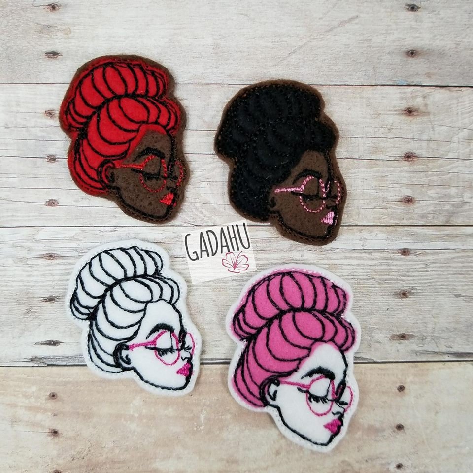 This is an Instant Download Embroidery Digital File "Girl with glasses feltie"
