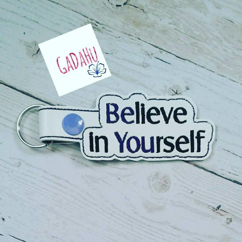 This is an Instant Download Embroidery Digital File "Believe in Yourself " Key Fob/Snap Tab"