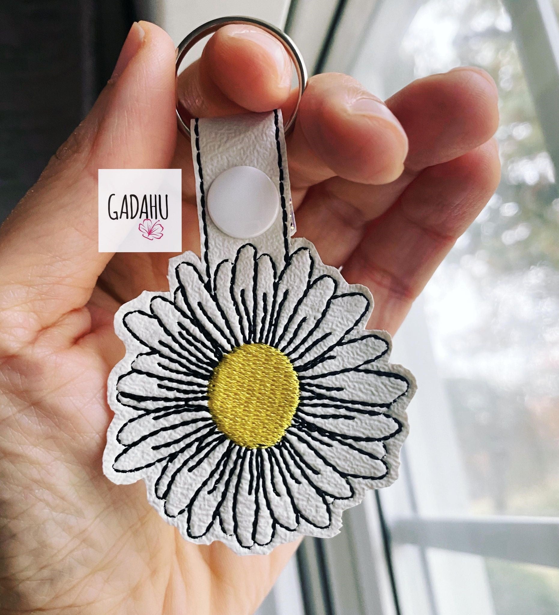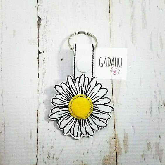 This is an Instant Download Embroidery Digital File "Daisy Flower Snap Tab Key Fob ITH Embroidery design file" Snap Tab Embroidery Design 4X4/5x7 size.