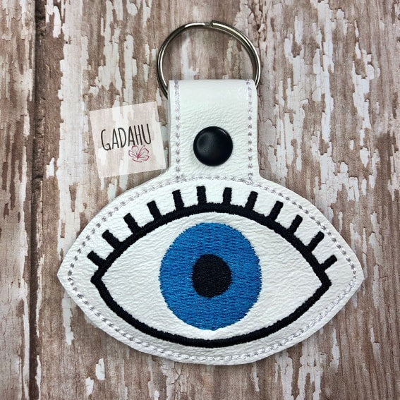 This is an Instant Download Embroidery Digital File "Evil Eye Key Fob/Snap Tab"