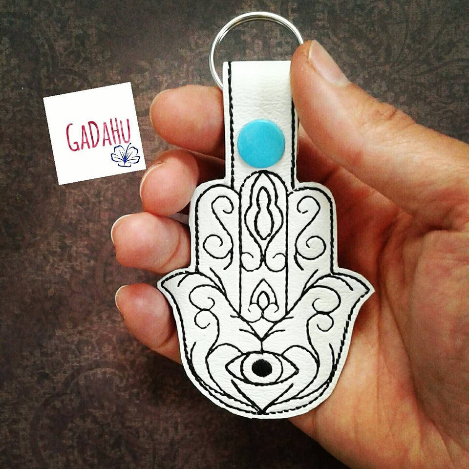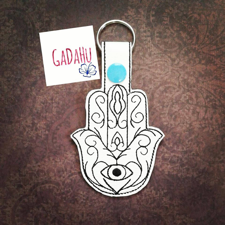 This is an Instant Download Embroidery Digital File "Hamsa Hand/Hand of Fatima Key Fob/Snap Tab"