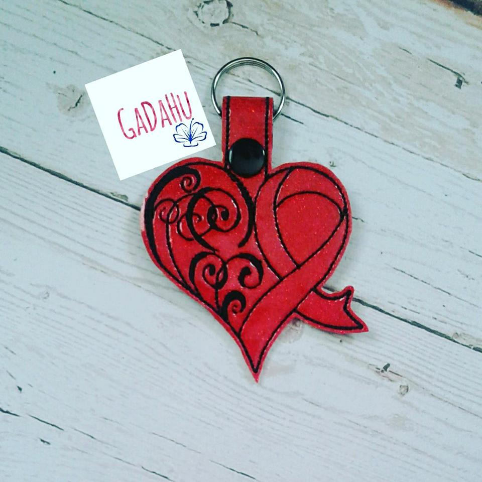 This is an Instant Download Embroidery Digital File "Heart Disease Awareness Key Fob/Snap Tab"