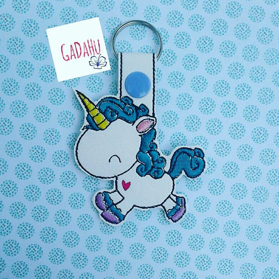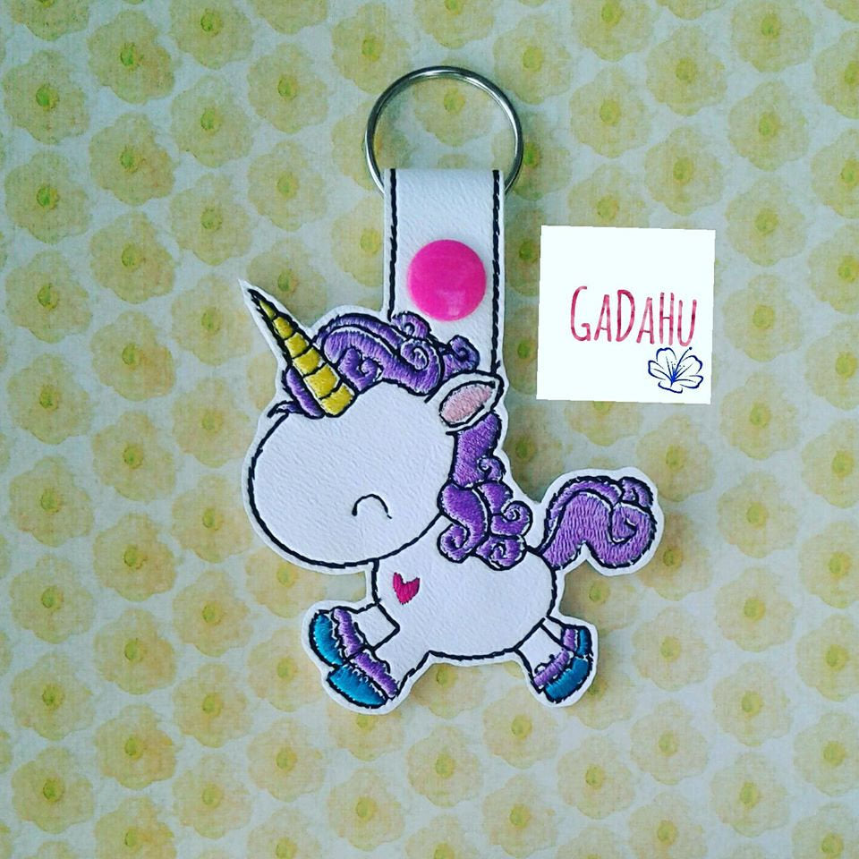 This is an Instant Download Embroidery Digital File "Unicorn with Heart Key Fob/Snap Tab"