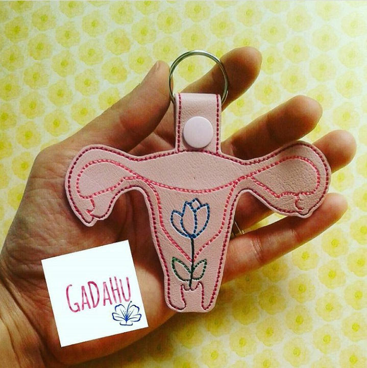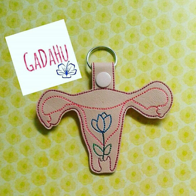 This is an Instant Download Embroidery Digital File "Uterus with flower Key Fob/Snap Tab"