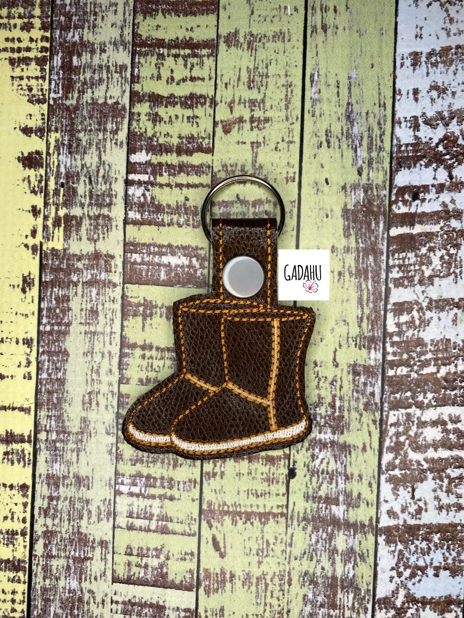 This is an Instant Download Embroidery Digital File "Winter boots Key Fob/Snap Tab"