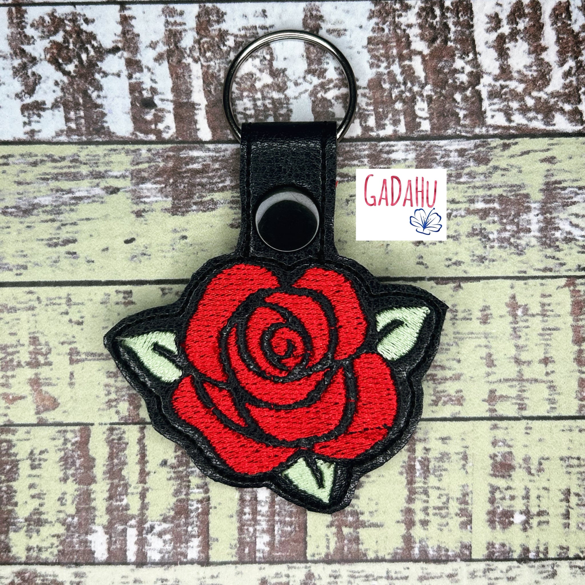 This is an Instant Download Embroidery Digital File "Rose Snap Tab Key Fob ITH Embroidery design file" Snap Tab Embroidery Design 4X4 /5x7