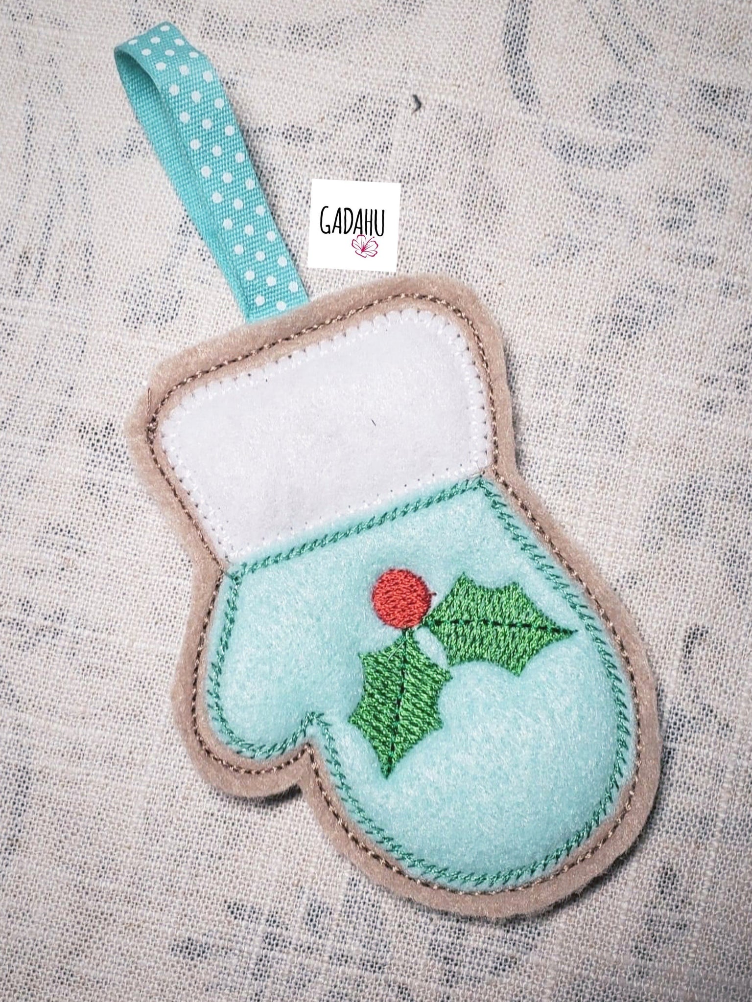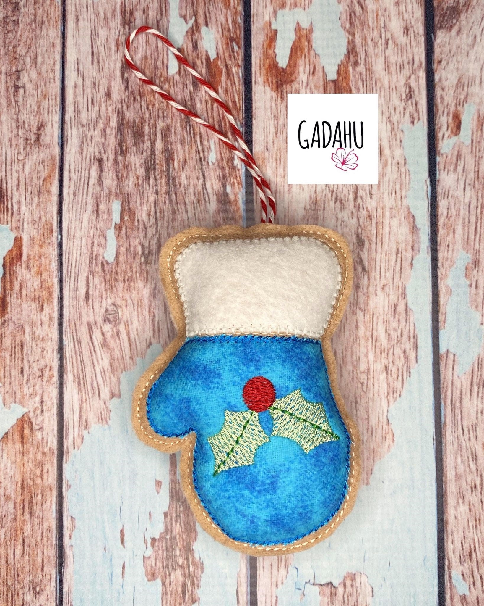 This is an Instant Download Embroidery Digital File "Felt Mitten Ornament Machine Embroidery Design 4X4"