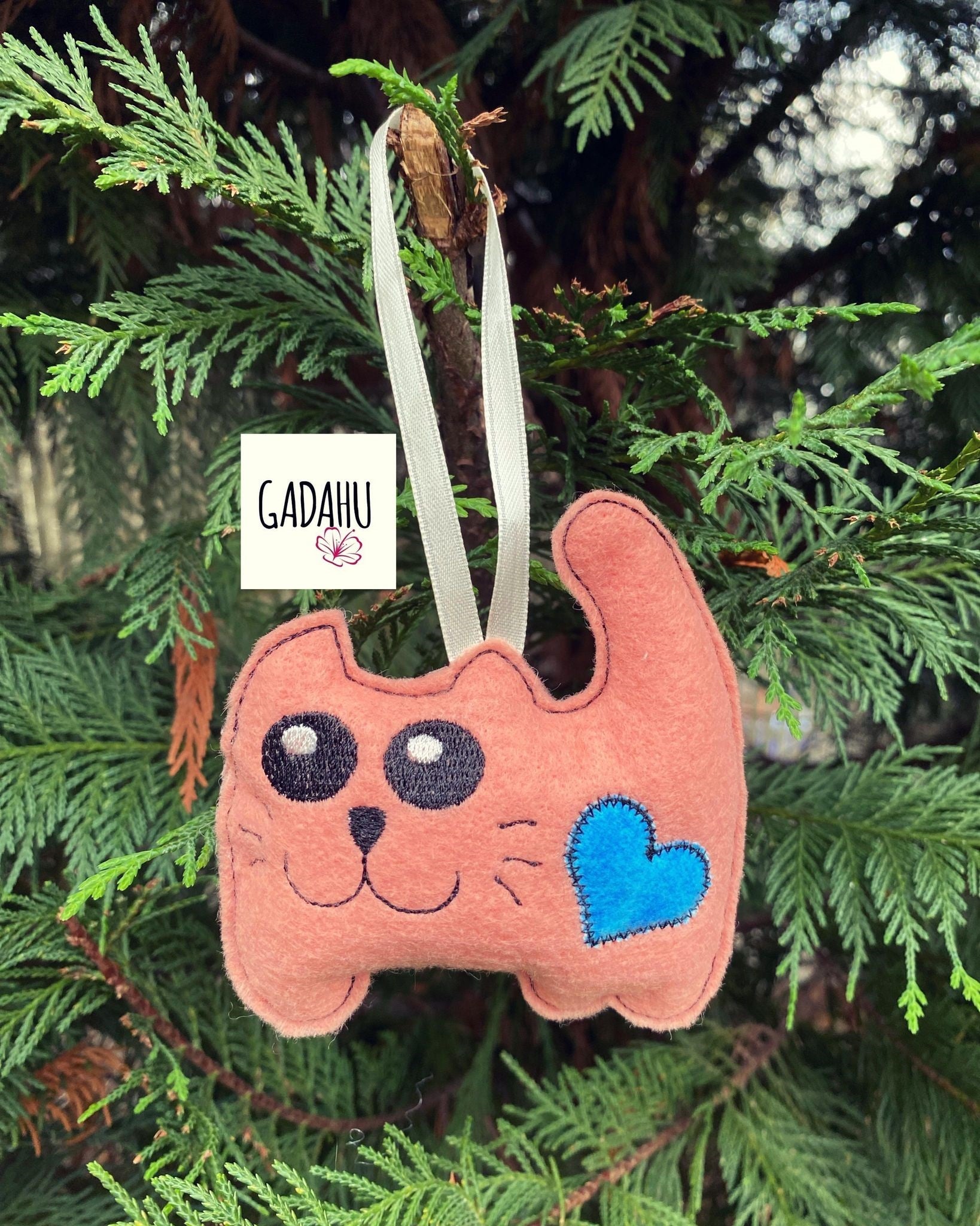 This is an Instant Download Embroidery Digital File "Kitty with heart applique Ornament Machine Embroidery Design 4X4"